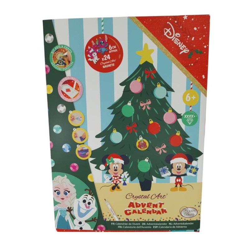 Attends Noël en toute sérénité tout en t'amusant grâce à ce calendrier de l'avent Disney Crystal Art et ses figurines à diamanter jour après jour! Dès 6 ans.
