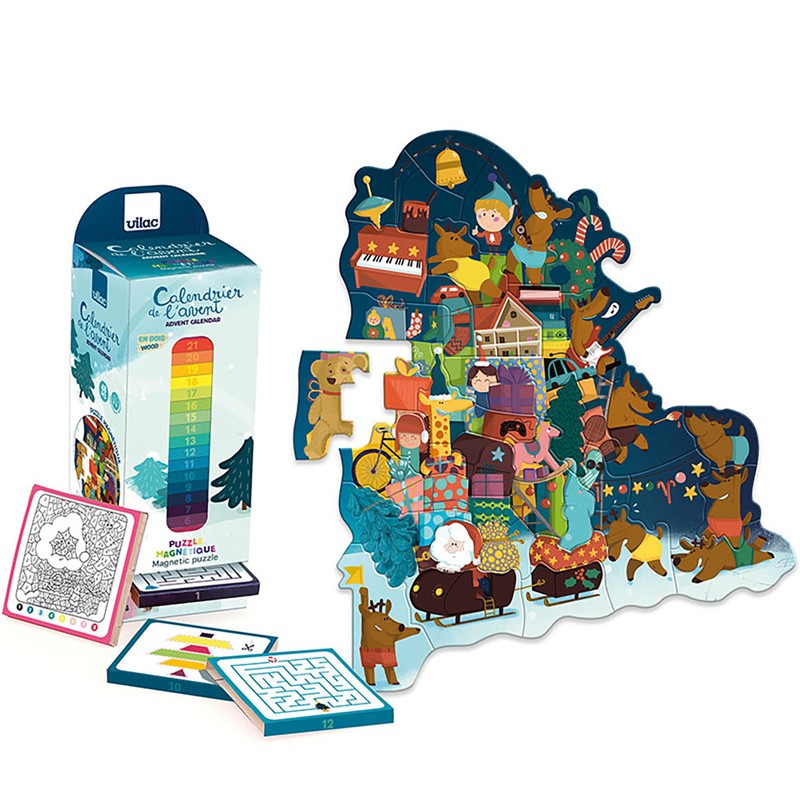 Comme une envie d’être à Noël ! Découvrez notre calendrier de l’avent original ; chaque jour, votre enfant va découvrir 2 magnets en bois à l’intérieur des pochettes, permettant de reconstituer un joli puzzle de Noël au fil des jours. Ce calendrier ludique allie l’excitation des surprises quotidiennes à différents apprentissages, afin de stimuler l’imagination et l’éveil des tout-petits pendant les fêtes de fin d’année. Le petit plus ? Les pochettes sont décorées avec des activités : labyrinthe, coloriage, points à relier… Vivement le 1er décembre !