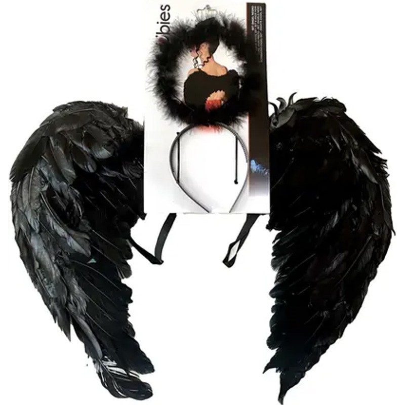 Ange ou démon, es-tu un ange… Ou un démon? Avec ces ailes d'ange noir avec serre-tête le doute est plus que permis! Parfait pout finaliser un déguisement.