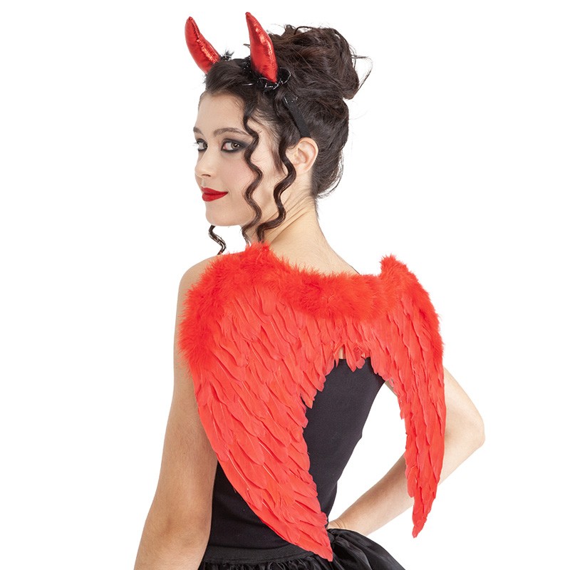 Ange ou démon, es-tu un ange… Ou un démon? Avec ces ailes d'ange noir avec serre-tête le doute est plus que permis! Parfait pout finaliser un déguisement.