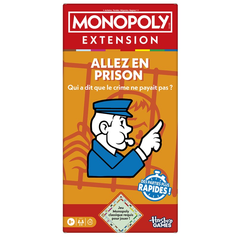 Développez l'environnement carcéral de votre Monopoly avec l'extension Allez en prison, une évolution surprenante où la corruption règne. Dès 8 ans.