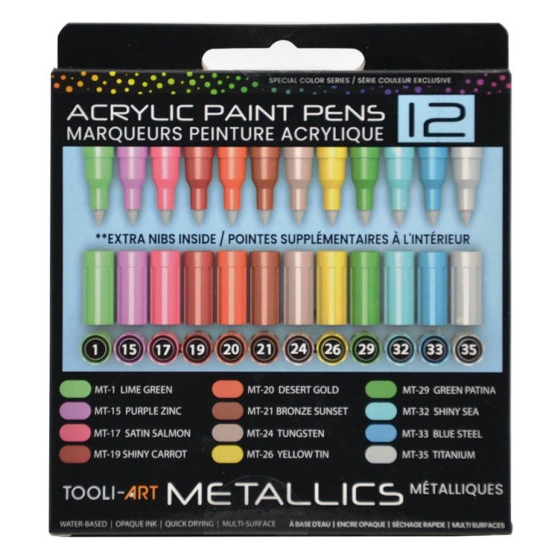 Ce coffret Tooli-Art Metallics contient 12 marqueurs acryliques à pointe extra fine de 0,7 mm. (Complément au coffret Metallic de 24 couleurs, sauf 01)