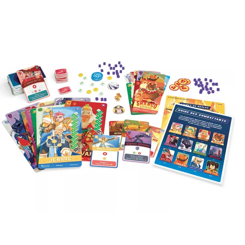 Tag Team est un jeu de combat d'arcade mélangeant auto-battler et deckbuilding. Combinez les decks de deux combattants et fight ! Dès 10 ans.