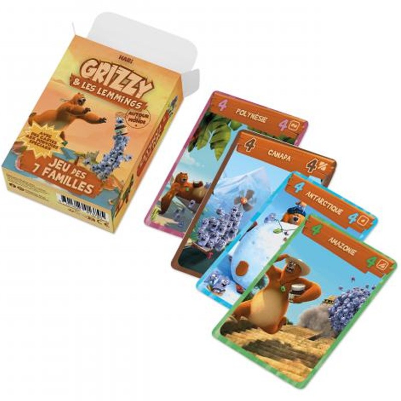 Les 5 cartes d'une famille représentent chacune un gadget, un animal, un gag, un Lemming et Grizzy.