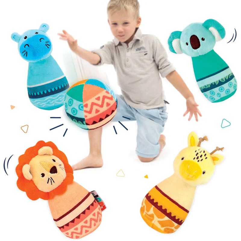 Imaginez votre petit champion s’amuser à renverser ces adorables quilles en forme d’animaux ! Leur texture douce est parfaite pour les câlins et ajoute de la magie dans la chambre !