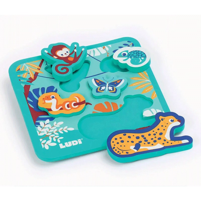 Ce jeu d’encastrement est idéal pour stimuler la curiosité et la motricité de bébé. Avec un plateau et 5 animaux de la jungle en mousse douce et légère, il garantit des heures de jeu en toute sécurité. Ce puzzle éducatif aide les enfants à reconnaître les formes et les noms des animaux, tout en s’amusant.
