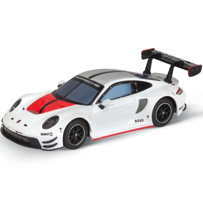 Hybrid Porsche 911 GT3 R White Lightning est une voiture télécommandée qui peut être utilisé aussi bien sur le circuit Carrera Hybrid que librement. Dès 12 ans.